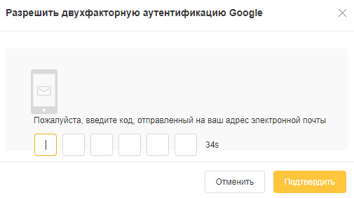 Введите код из Google Authenticator и нажмите ещё раз на кнопку «Отправить».