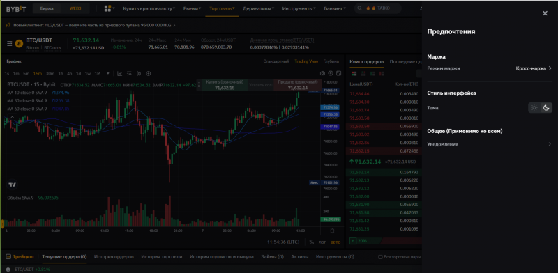 На каждом инструменте бессрочных USDT-фьючерсов Bybit включен режим хеджирования (по умолчанию). Его нужно отключить, чтобы торговать на Bybit в CScalp.