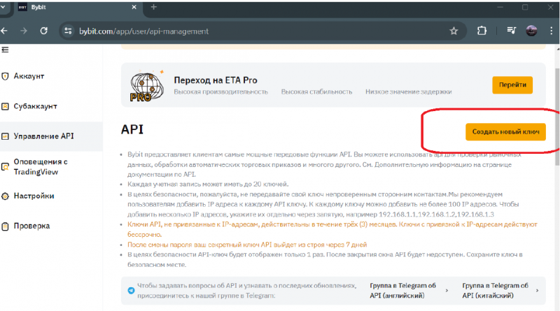Внимание! Для создания API-ключей Bybit необходимо настроить двухфакторную авторизацию (2FA) через Google Authenticator.