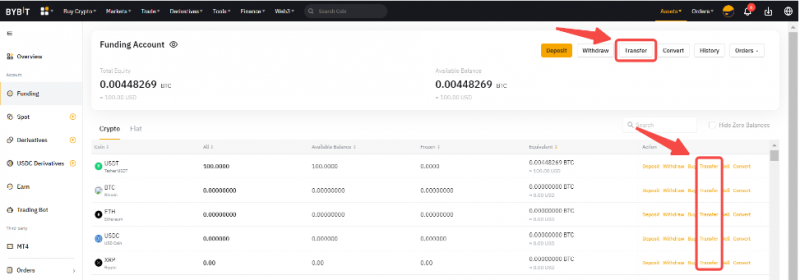 Как переводить средства на бирже Bybit