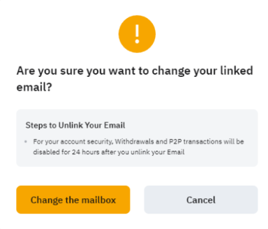 В целях безопасности аккаунта снятие средств и P2P-транзакции будут отключены в течение 24 часов после удаления адреса электронной почты.