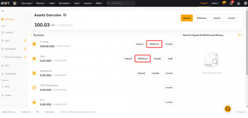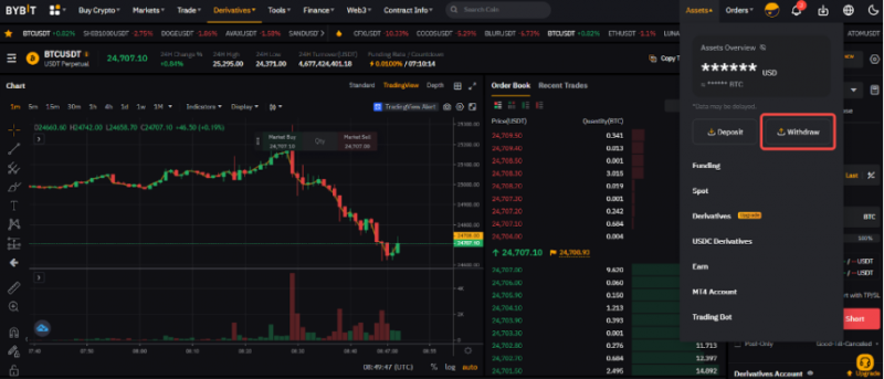 Как вывести активы в блокчейне на бирже ByBit