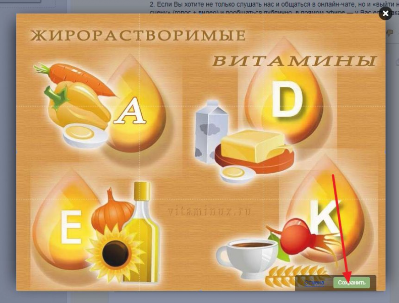 Затем изображение можно обрезать/кадрировать перемещая соответствующие края рамки редактора. Если же картинка в этом не нуждается, то просто жмем «Сохранить»