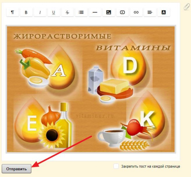 Всё! Картинка вставилась в пост и осталось нажать на кнопку «Отправить»