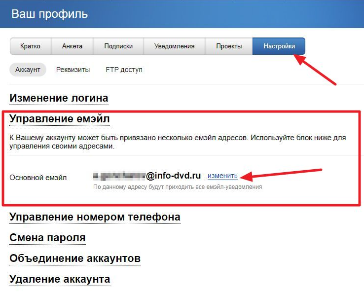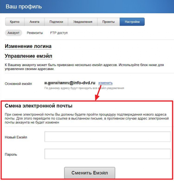 После нажатия кнопки «Сменить Емэйл» на новую указанную Вами почту будет выслана ссылка для подтверждения сделанных изменений, и Вам только остается перейти по ней.