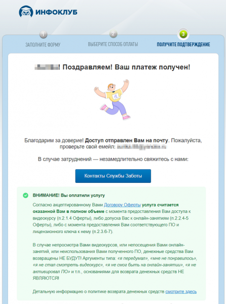 А на почту придет чек об оплате и дальнейшие инструкции: