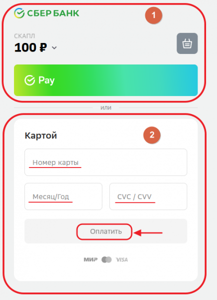 Введите данные карты и нажмите «Оплатить»: