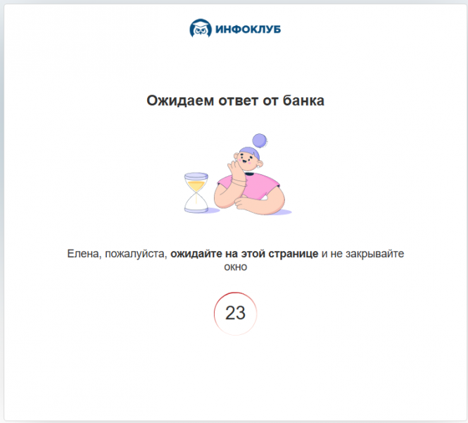 Дождитесь ответ от банка: