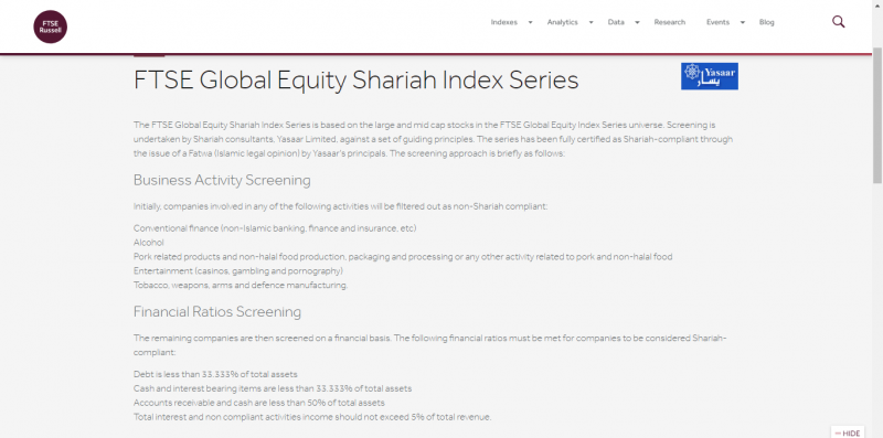 Как пример, инструкция по отбору инструментов для индекса FTSE Global Equity Shariah Index Series на сайте FTSE Russell: