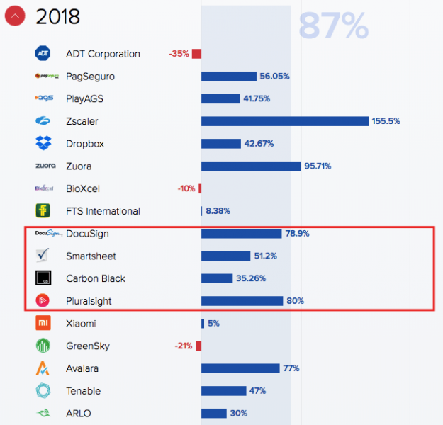 В инвестициях предугадать результат невозможно. Но, чаще всего на IPO попадают только лучшие компании, так как требования к листингу в Америке весьма серьезные. Вот скришот с результатами разных фирм в прошлом году: