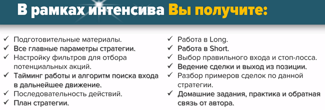 • На интенсиве все участники получат одну из стратегий платного тренинга, а именно стратегию «Вечернее время».