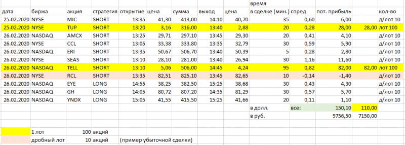 Встречались также 3-4 сомнительных ситуации, после чего было принято решение сделки лучше не открывать. Возможно, имела бы место и ситуация, когда можно было бы не успеть зайти в какую-либо из сделок (по причине наблюдения за графиком по другой акции (или другим акциям), если отобранных акций много).
