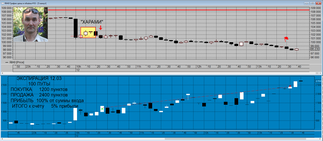 «Сегодня 155 ПУТы выросли в цене в 156 раз (с 10 пунктов до 1560)!!! Хорошая могла быть «Лоторейка» — 13 рублей отдали, 2000 рублей получили))). Ай да опционы)))».