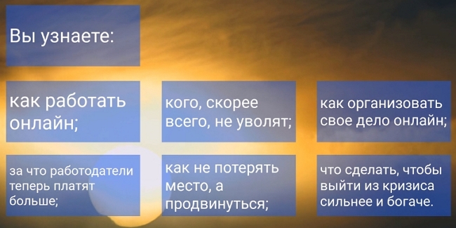 — Если Вы не понимаете, как зарабатывать в условиях текущей ситуации в мире, и ищите новые источники в онлайне, чтобы уверенно выйти из кризиса.