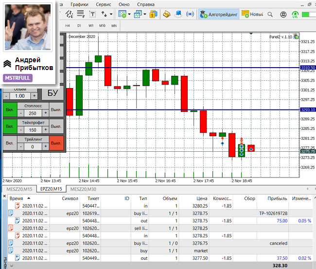 Еще результат от 02.11.20: +328 долларов.