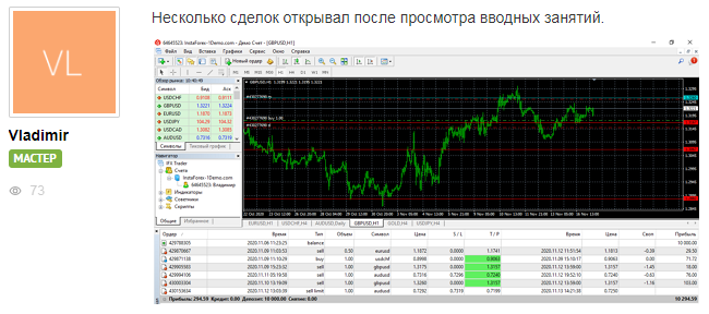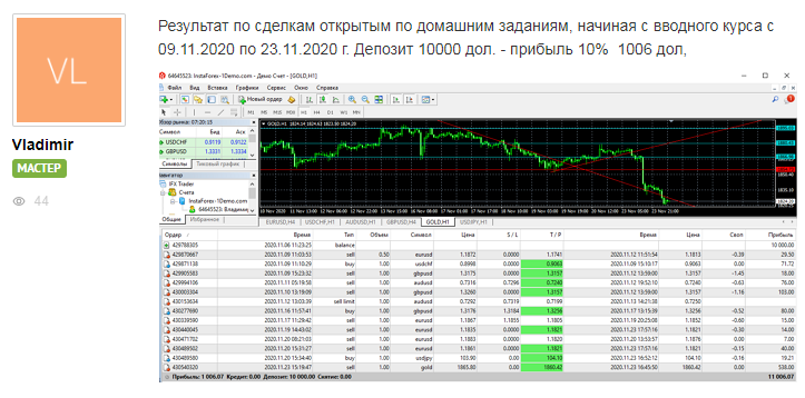 «Выполнял домашние задания, начиная с вводного курса с 9 ноября по 23 ноября и получил прибыль 10% 1006 долларов»