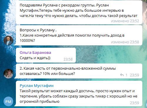 «Поздравляем Руслана с рекордом группы: доход в 10000%»