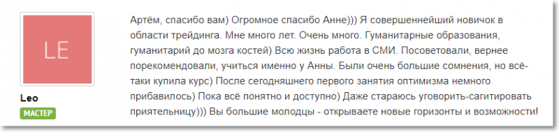 «Я совершеннейший новичок в области трейдинга, гуманитарий до мозга костей. Уже зову приятельницу на занятия»