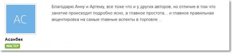 «Занятие происходит подробно, ясно, а главное — простота и правильная акцентировка на важных аспектах в торговле»
