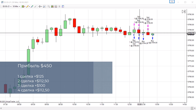 За час ей удалось забрать прибыль +450 долларов с минимальным риском для своего депозита. Смотрите, как совершались эти сделки: