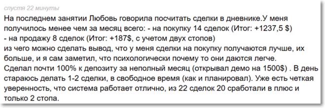 «Сделал почти 100% к депозиту за неполный месяц. В день стараюсь делать 1-2 сделки в свободное время, как и планировал»