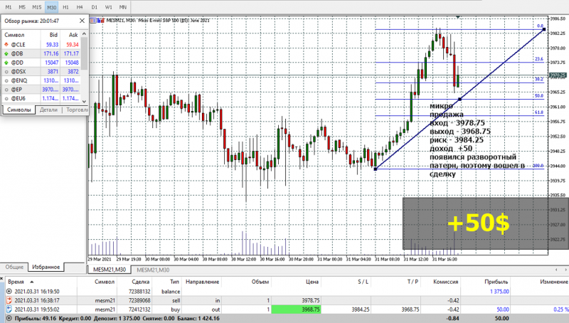 Итог сделки: +50$