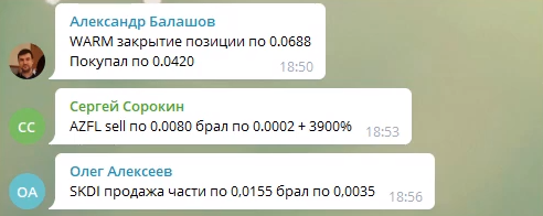 «AZFL sell по 0,008, брал по 0,0002 +3900%»