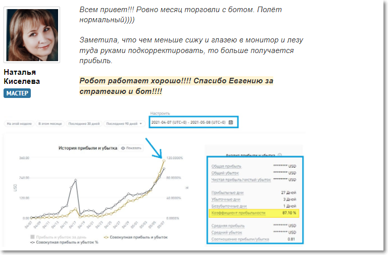 Робот работает хорошо!!!! Спасибо Евгению за стратегию и бот!!!!»