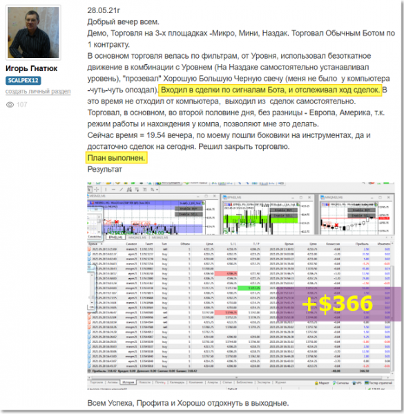 «Входил в позиции по сигналам бота и отслеживал ход сделок»