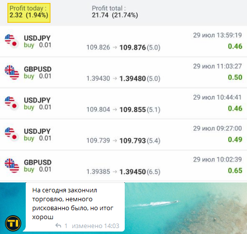 +1,94% «На сегодня закончил торговлю, немного рискованно было, но итог хорош»