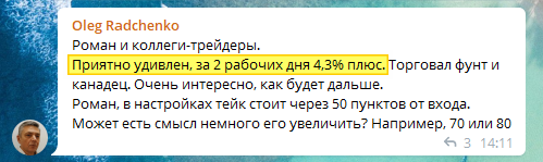 «Приятно удивлен. +4,3% за 2 рабочих дня»