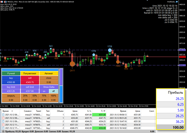 Вот так выглядит рабочий стол и прибыль за сегодня на микро контракте: