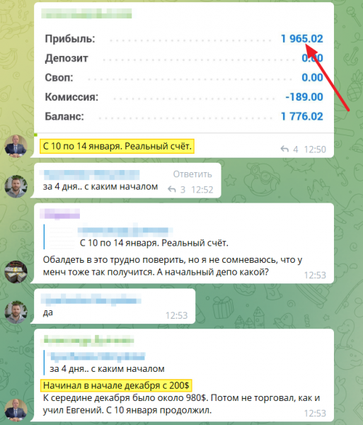 Начинал в начале декабря с $200. К середине декабря было около $980. Потом не торговал, как и учил Евгений. С 10 января продолжил» — делится Александр.