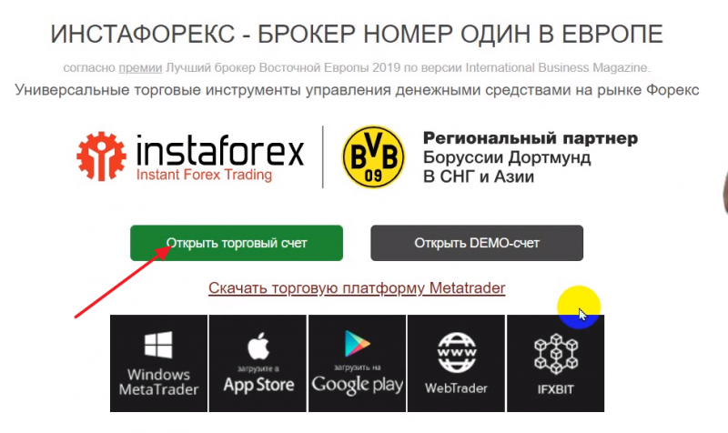 Аналогично открывается реальный счет, только Вам нужно выбрать кнопку «Открыть торговый счет» и заполнить анкету: