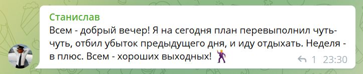 А как Вам ощущение уходить на выходные c перевыполненным планом?