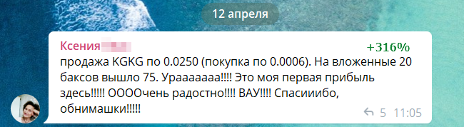 «На вложенные 20 баксов вышло 75. Урааааааа!!!! Это моя первая прибыль здесь!!!!! ООООчень радостно!!!! ВАУ!!!! Спасииибо, обнимашки!!!!!» — делится нескрываемой радостью Ксения.