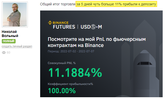 «Общий итог торговли за 5 дней чуть больше +11% прибыли к депозиту»