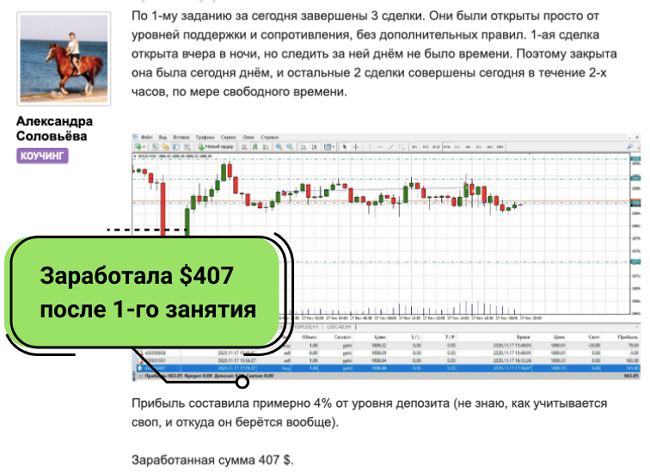 Многие активные ученики начинали зарабатывать сразу, во время занятий. Кому-то требовалось больше времени. Но каждый, кто с полной ответственностью подошёл к процессу обучения, рано или поздно приходит к подобным результатам: