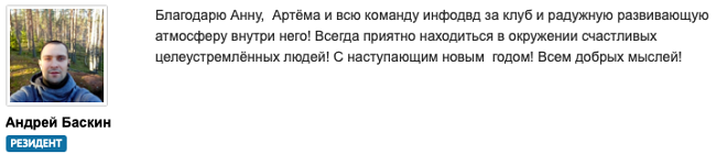 Главное, что мотивировало Артёма и Анну развивать общие проекты – это отзывы участников. Когда люди с такой теплотой отзываются о твоей работе, ты просто не можешь остановиться: хочется продолжать давать самое лучшее и только на лучших условиях.