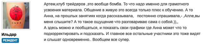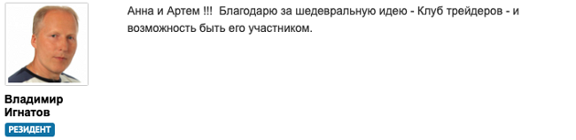 Ведь самого начала Клуб трейдеров Анны Зольд подразумевал исключительно узкий круг общения, чтобы можно было уделить внимание каждому, кто в этом нуждается, и при этом не «застрять» на встречах на 4-5 часов. И пока у нас это получается.