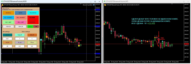 Сделка с телефона, с приложения для удаленного компьютера. Тренд вниз, откат, на М20 ТТ +красная полоска, на М5 тоже ТТ и красная свеча с красной полоской.