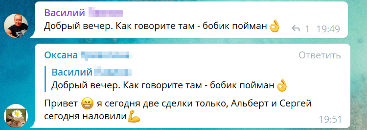 С утра до вечера в чате кипит работа – ученики заходят в сделки в удобное для себя время, общаются и делятся результатами.