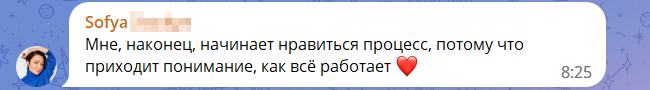 В телеграм-чате и группе ученики продолжают делиться своими результатами и поддерживать друг друга на пути к финансовому благополучию и профессиональному росту: