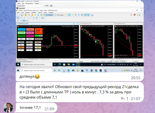 А также сможете удваивайте свой депозит каждый месяц с помощью авторской системы CryptoDelta от трейдера-практика со стажем более 20 лет.