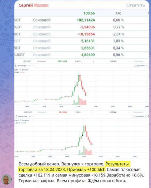 «Результаты торговли за 18.04.2023. Прибыль +100,66$»