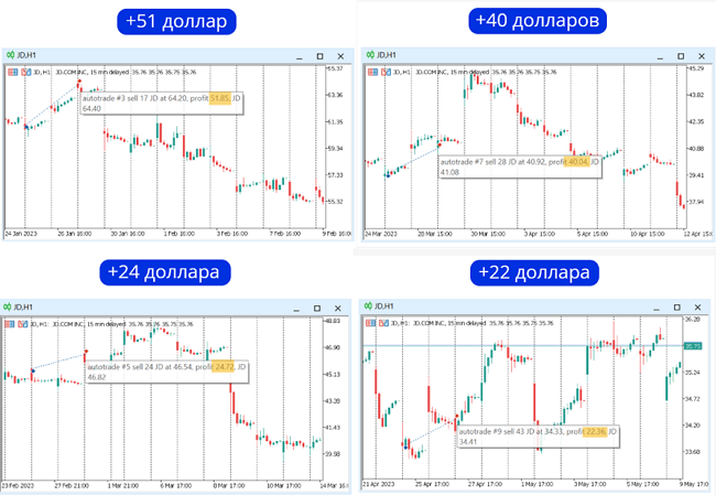 Например, вот такие циклы нашел робот на китайских акциях компании jd.com и в автоматическом режиме получил следующие результаты: