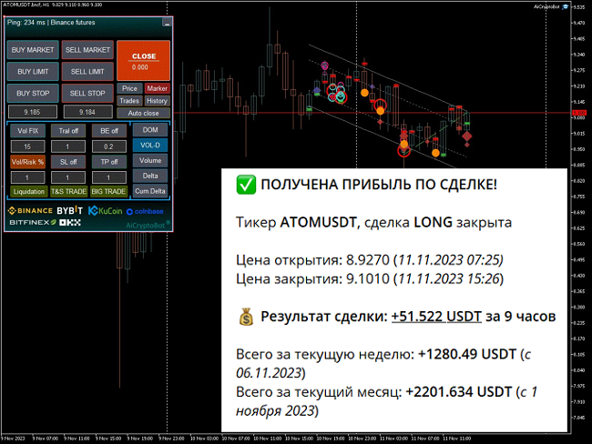 Результат с 1 по 11 ноября +2201,6 USDT: