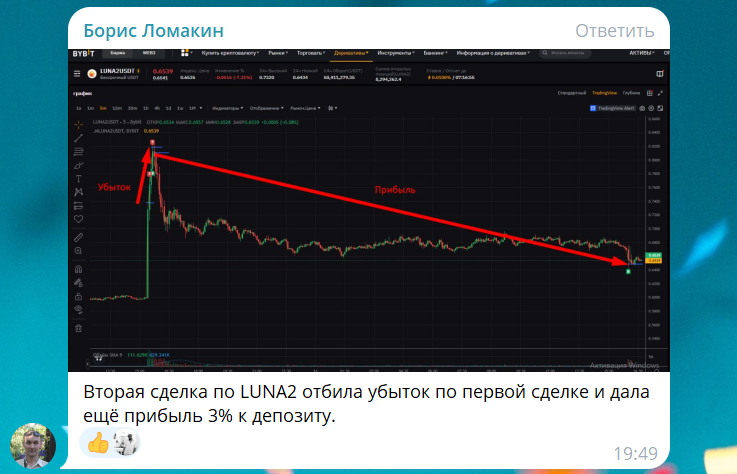 «Вторая сделка по LUNA2 отбила убыток по первой сделке и дала ещё прибыль 3% к депозиту»