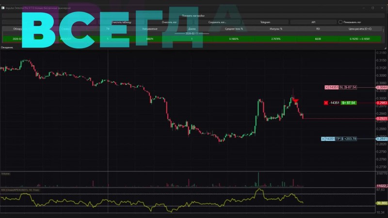 Impulse Detector Pro делает именно это: алгоритм непрерывно анализирует рынок и в реальном времени подсвечивает моменты, когда в сделку ещё не поздно зайти.