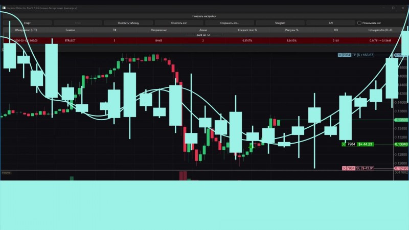 Impulse Detector Pro делает именно это: алгоритм непрерывно анализирует рынок и в реальном времени подсвечивает моменты, когда в сделку ещё не поздно зайти.